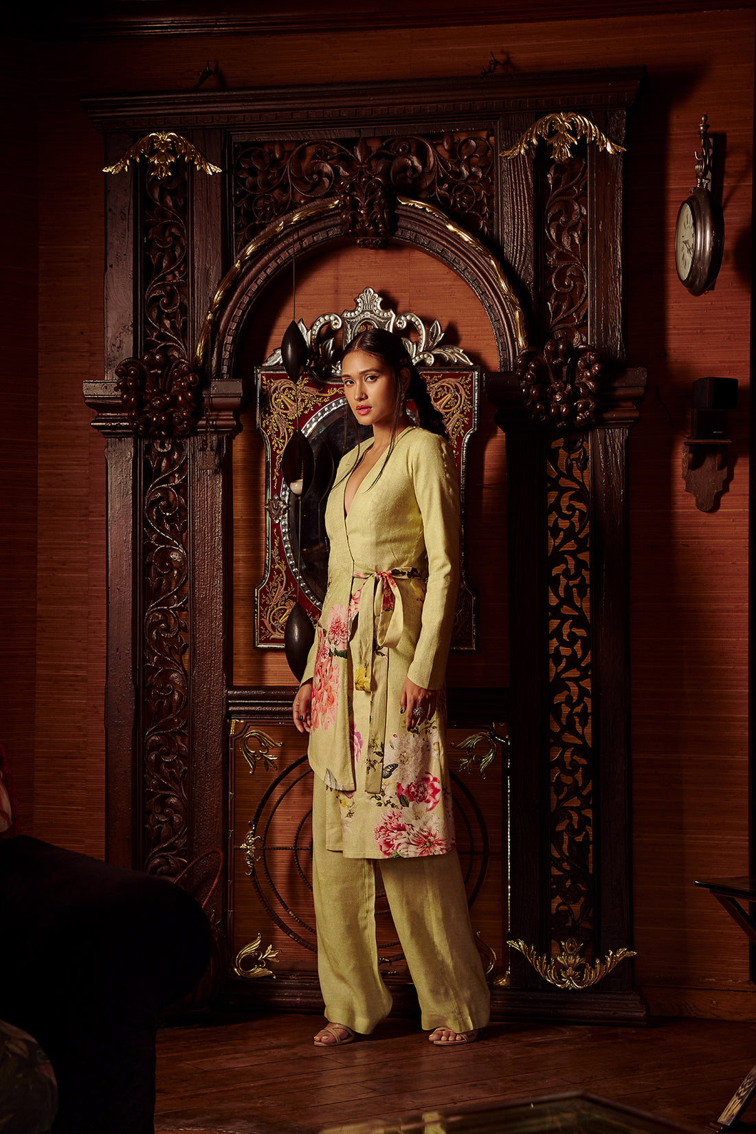 A floral printed jumpsuits is a statement-making New Year’s Eve outfit that oozes confidence and comfort. It’s the perfect pick for women who prefer something sleek and unconventional. The best part? You can move freely, dance effortlessly, and still look red-carpet ready.