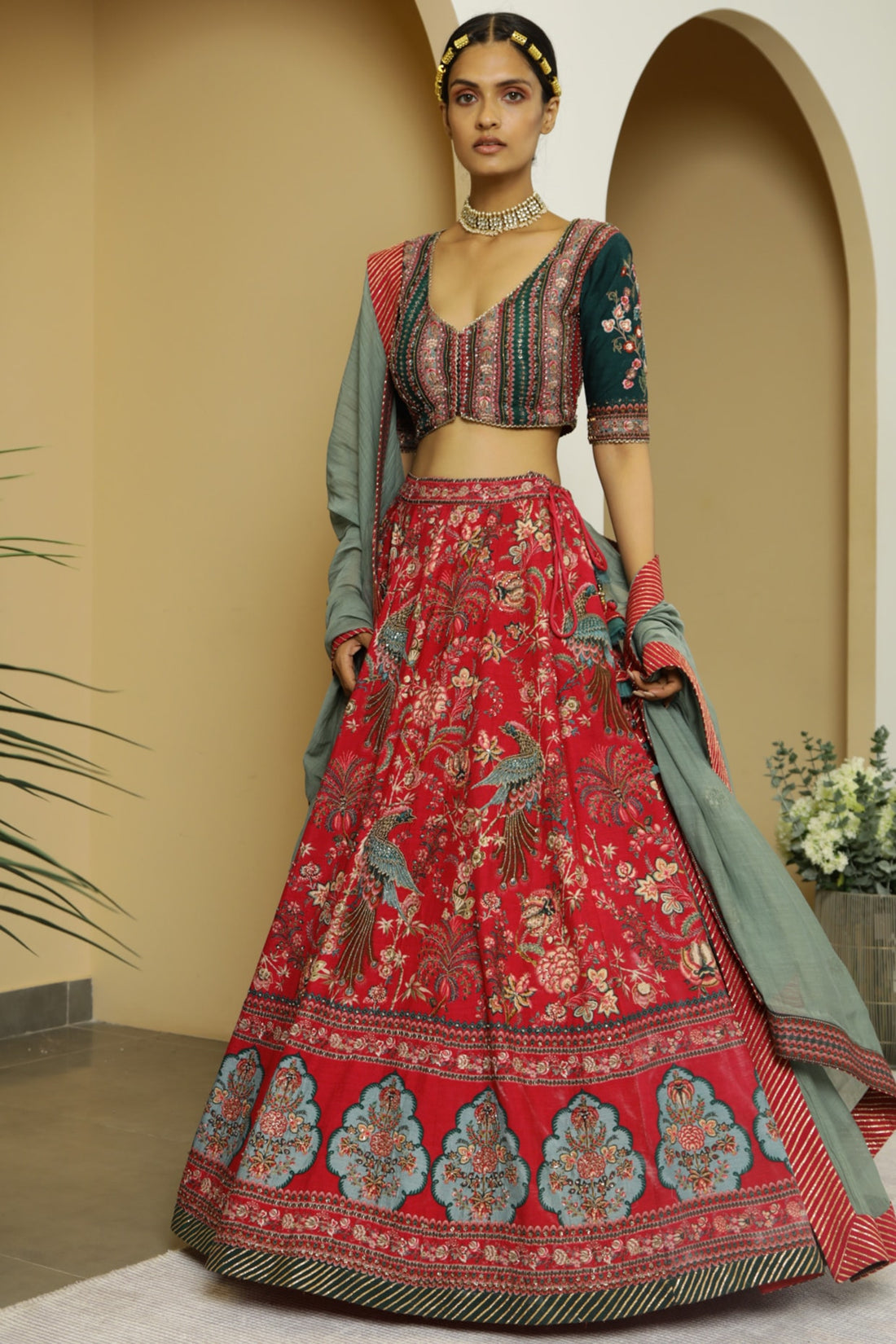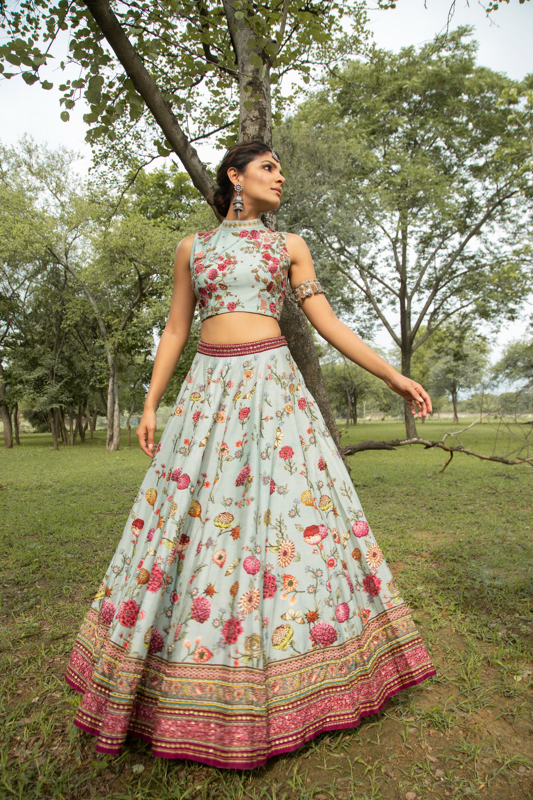 Floral Printed Lehengas for Mehndi: Fresh and Vibrant