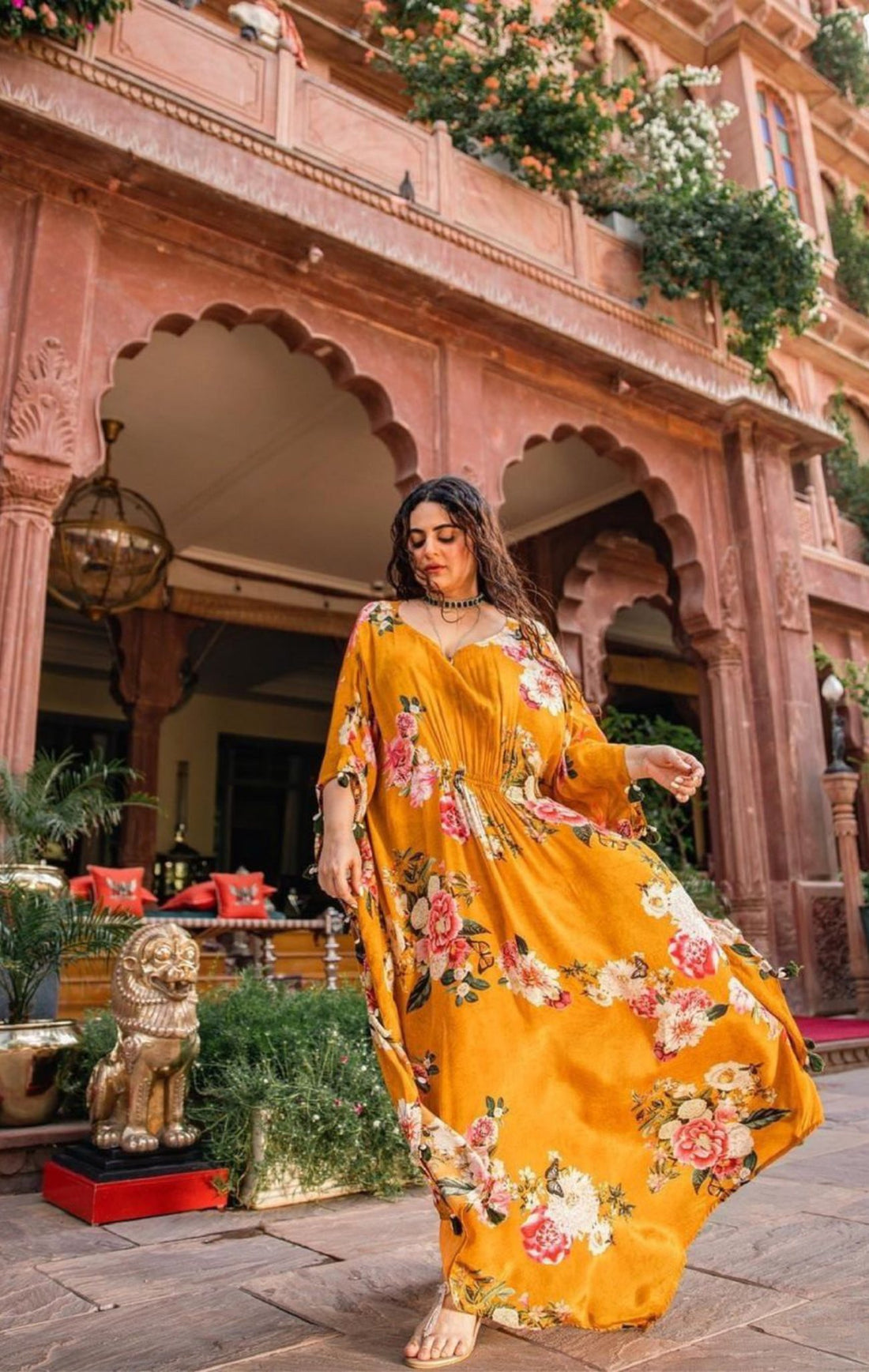 Treat your mother to the blissful charm of Kalista's Mother’s Day Special kaftans, transporting her to a realm of sun-drenched tranquillity. With their flowing silhouettes and intricate patterns, these Floral kaftans Dresses evoke a sense of wanderlust, celebrating her adventurous spirit and boundless love. Let her embrace the joys of summer in unparalleled style and comfort, enveloped in the sheer elegance of Kalista's meticulously curated selection. Gift her the serenity of the season and express your heartfelt gratitude for her enduring grace and warmth, and let her know that she is cherished beyond measure. Celebrate the beauty of motherhood with a token of love that captures the essence of summer and the spirit of adventure.