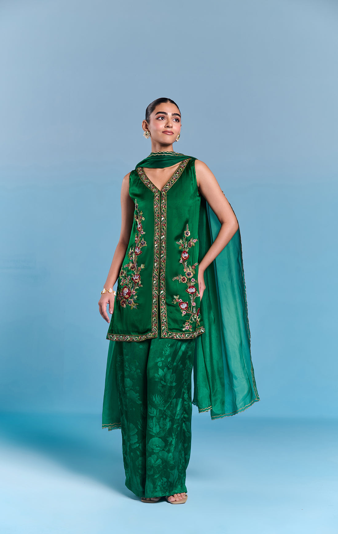 A Gharara set is a classic ramadan dress for special evenings. The flared pants allow easy movement and relaxed sitting. It offers a traditional appearance without feeling restrictive. This style is often chosen for family celebrations and festive dinners.