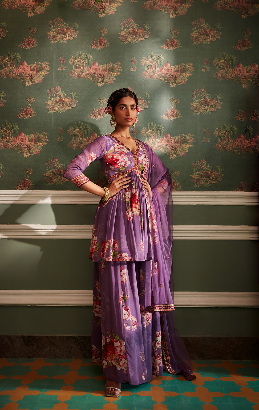 Sharara sets offer a youthful, lively vibe that fits beautifully with Lohri’s joyful spirit. Their wide-legged flare, paired with an embellished kurta, creates stunning visual drama—making them standout lohri outfits for women who love modern festive fashion. These lohri dresses strike the right balance between tradition and trend.